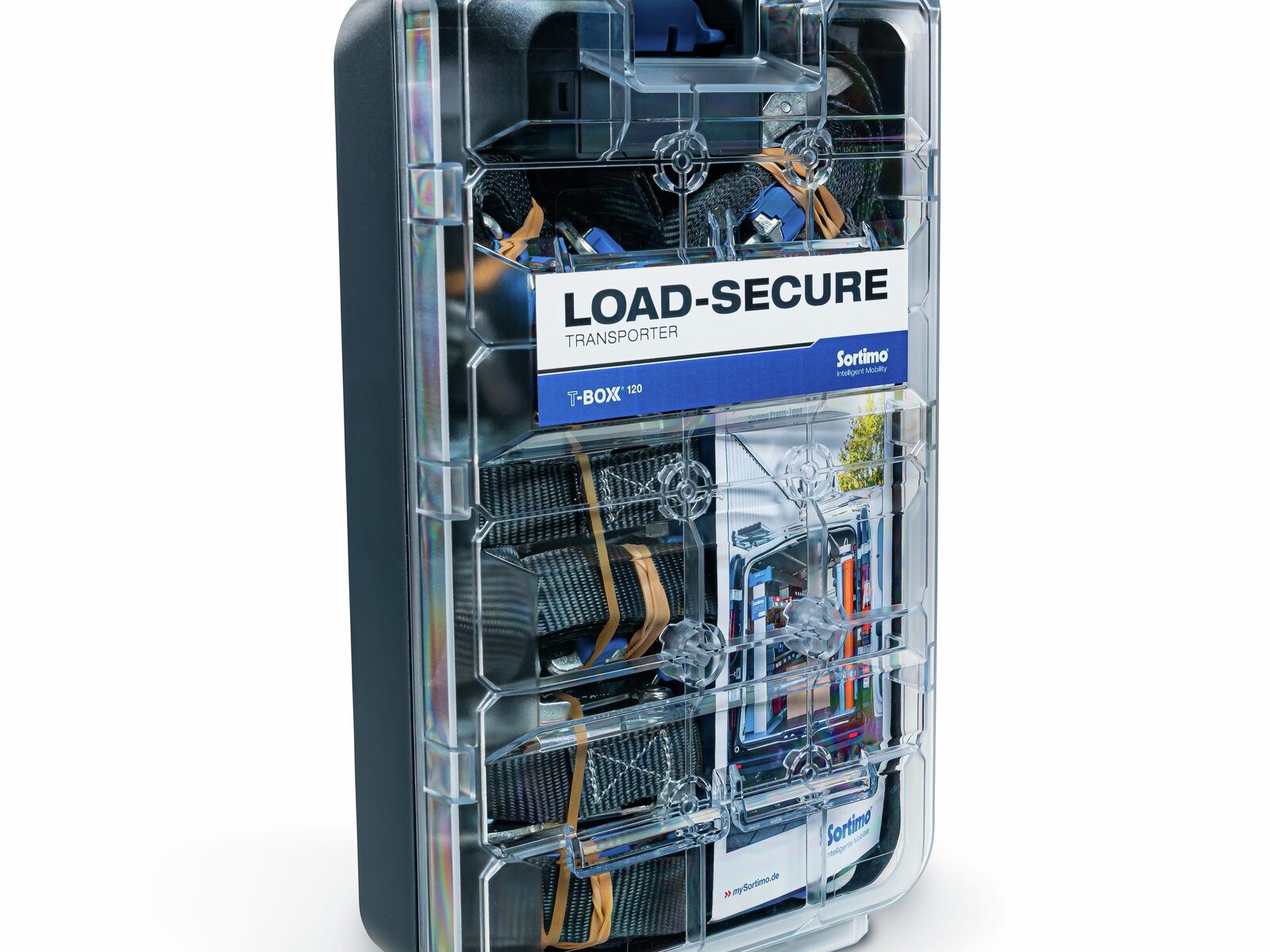 T-BOXX 120 zawiera podstawowe wyposażenie do zabezpieczania ładunku w furgonetce. Dzięki zintegrowanemu hakowi ProClick, T-BOXX 120 można umieścić w różnych miejscach na systemie regałów lub w pojeździe. Dzięki temu dołączone elementy zabezpieczające są szybko dostępne i gotowe do użycia.